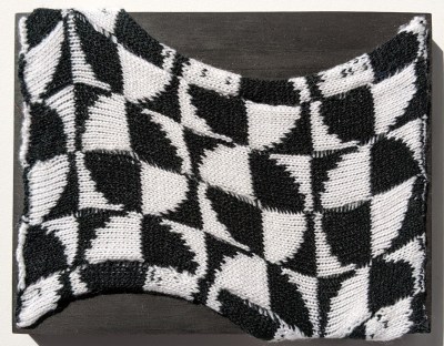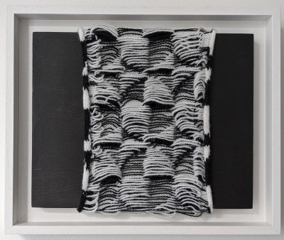 In a similar vein, many of the knitted works Field, Halfway There, Noise, Seamless & Verse, are created from the reverse side. The artist reveals the underside, the looser threads. It is through this process of uncovering and revealing that McMurray points